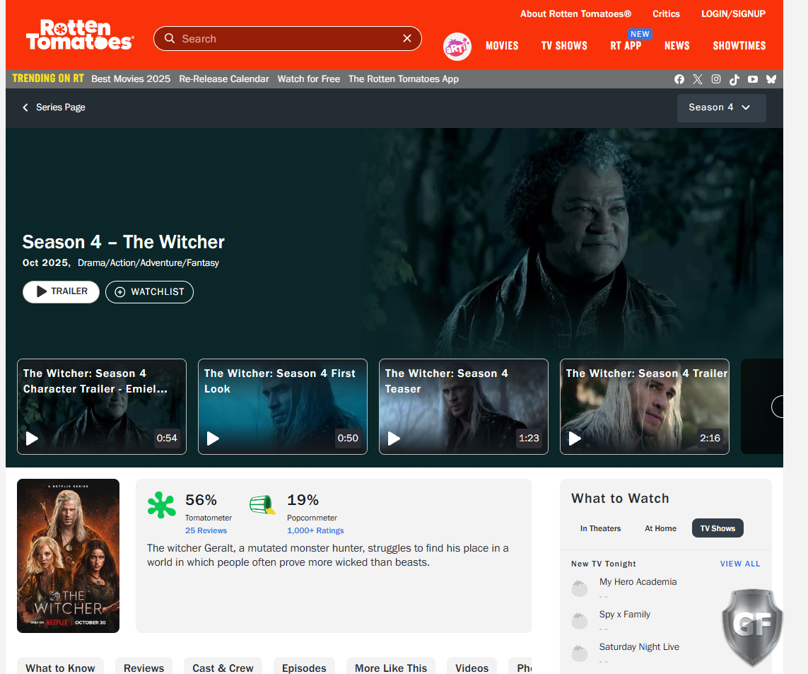 На Rotten Tomatoes появились первые рецензии на четвёртый сезон сериала «Ведьмак», и они оказались рекордно низкими. На момент публикации рейтинг критиков составляет 55% — это худший результат среди всех сезонов основного шоу. Рейтинг зрителей ещё ниже — 25% на основе нескольких десятков оценок.